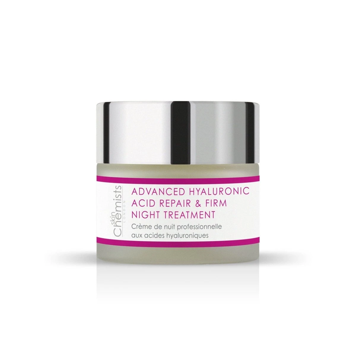 skinChemists Advanced Hyaluronic Acid Repair & Firm Night Treatment is a hydrating and firming formula that includes ingredients like Aloe Vera, Hyaluronic Acid, and Ginger Root Extract. This clean beauty product nourishes and plumps the skin, promoting a healthy and radiant complexion. It also helps to improve the skin’s texture and reduce the appearance of pores, leaving a dewy and smooth finish.