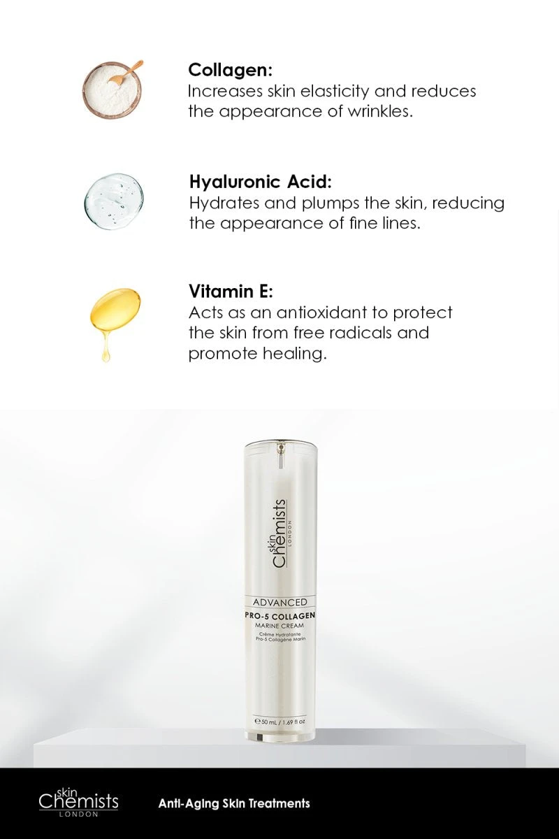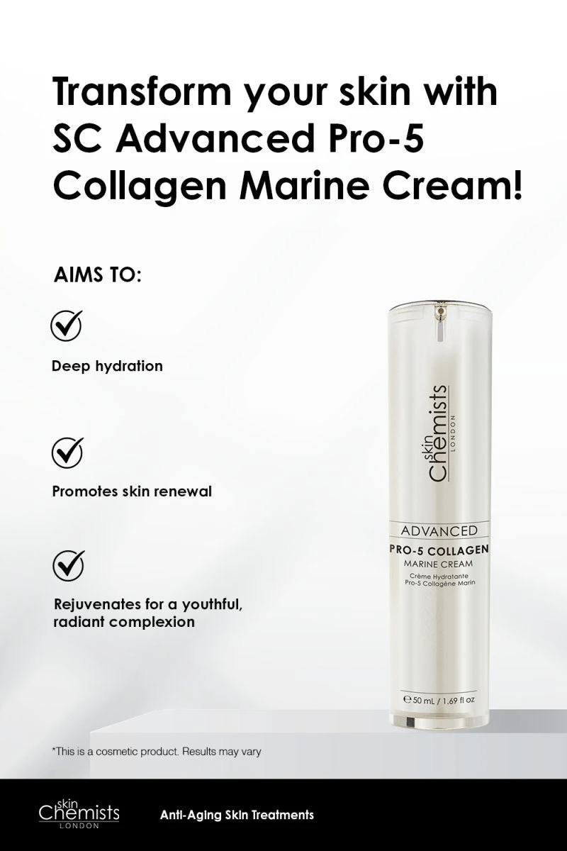 skinChemists Advanced Pro-5 Collagen Marine Cream is a hydrating and nourishing formula that combines the power of collagen with marine extracts. This clean beauty product smooths and brightens the skin, while also improving texture and minimizing the appearance of pores. With ingredients like coconut oil, sunflower seed oil, and hyaluronic acid, it provides a healthy and calming boost to the skin’s barrier, leaving it looking dewy and plumped.