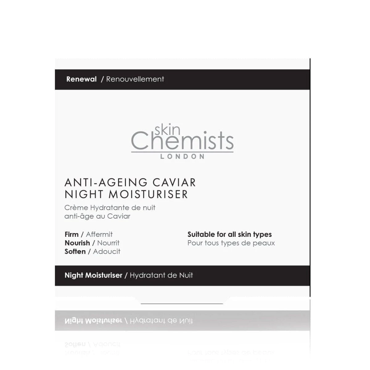 skinChemists Anti-Ageing Caviar Night Moisturiser is a powerful formula that combines the benefits of caviar extract, hydrolyzed pearl, and snail secretion filtrate to hydrate, plump, and smooth the skin. Infused with natural ingredients like aloe vera, rose oil, and gardenia extract, this moisturiser promotes a healthy and radiant complexion while improving the skin’s texture and reducing the appearance of fine lines and wrinkles. Experience the luxury of caviar and indulge in this nourishing and rejuvenating night moisturiser for a glowing and youthful-looking skin.