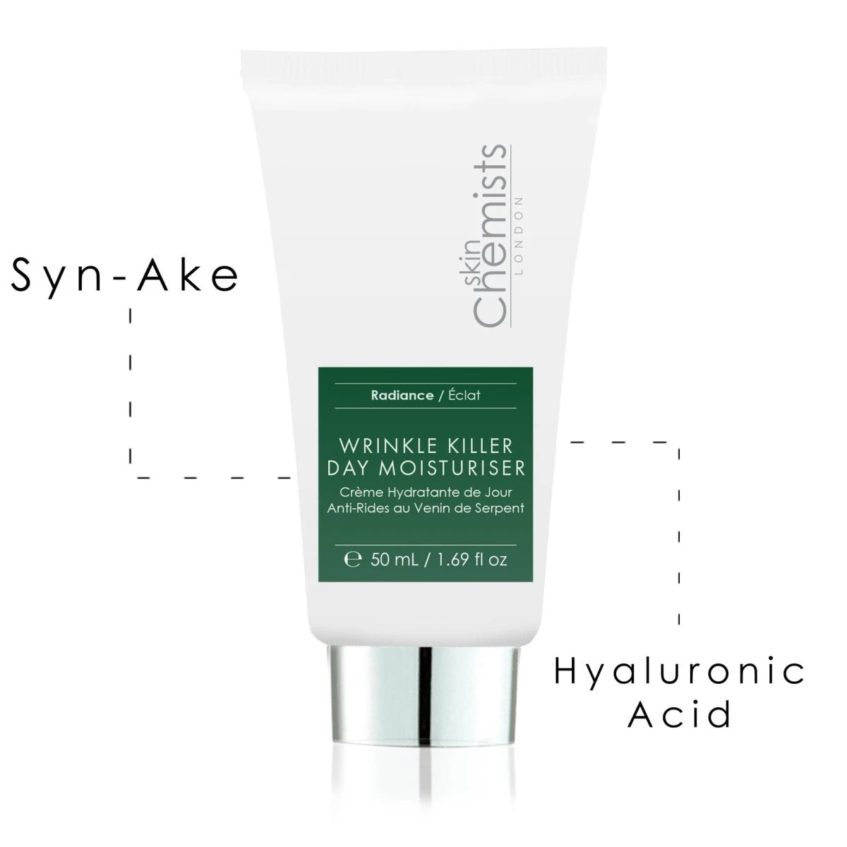 Our Wrinkle Killer Day Moisturiser is a powerful formula that smooths, firms, and hydrates the skin. Infused with the award-winning ingredient ‘Syn-Ake’, it effectively reduces fine lines and wrinkles for a youthful complexion. This antioxidant-rich moisturiser protects the skin from free radical damage, giving you a hydrated and radiant look.